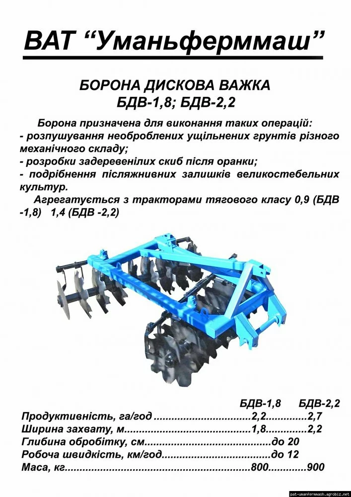 БОРОНА ДИСКОВА ВАЖКА БДВ-2,2